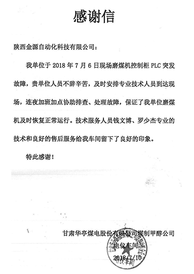 我公司售后服務(wù)人員在本次項(xiàng)目施工過程中表現(xiàn)出的頑強(qiáng)拼搏、團(tuán)結(jié)合作、不畏艱難、用戶至上的施工風(fēng)范及服務(wù)理念給業(yè)主方留下了深刻印象,為我公司另外續(xù)接了其他設(shè)備的改造項(xiàng)目,并發(fā)來了表揚(yáng)感謝信,給予了公司售后服務(wù)部極大的鼓勵(lì)。